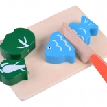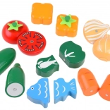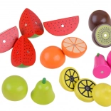 Ce kit en bois comprend une sélection variée de fruits, légumes et poissons, tous équipés d'aimants pour une séparation facile en parties. Chaque pièce est façonnée en bois de qualité et peinte avec des couleurs non toxiques, assurant la sécurité des plus petits.