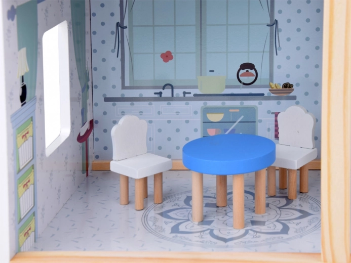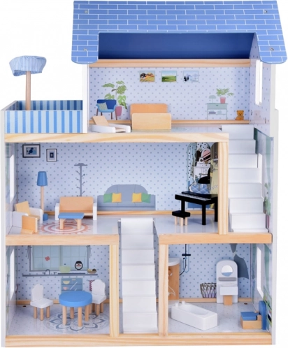 Maison de poupées en bois bleue + mobilier 3 étages ZA5273
