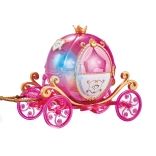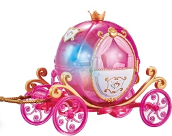Ce carrosse élégant, orné de détails dorés et de roues roses, est le rêve de toute petite princesse et promet des moments de jeu étincelants.