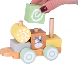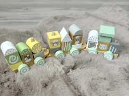 Chaque wagon de ce train est solidement fabriqué en bois durable et se connecte facilement aux autres, formant un long train que les enfants peuvent faire glisser sur le sol. Les couleurs pastel confèrent au jouet un charme exceptionnel et s’intègrent parfaitement dans toute chambre d’enfant.