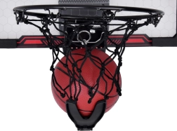 Le plaisir commence après un simple réglage et l'installation des piles nécessaires (3 x AA, non incluses). Le tableau offre un éclairage de fond coloré et un contrôle du volume. Le jeu peut se dérouler dans l'un des trois modes : solo, pour deux ou en manches chronométrées. Après le jeu, vous pouvez ranger le ballon dans le support spécial sous le panier.