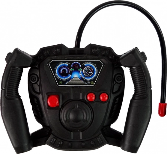 La télécommande 27 MHz tient confortablement en main et les icônes claires rendent l’utilisation intuitive : avancer, reculer et tourner est un jeu d’enfant. Les phares avant permettent de jouer même au crépuscule. Structure sûre sans arêtes vives et matériaux de qualité conformes aux normes CE et EN 71.