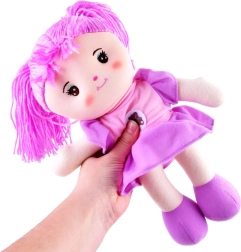 Adorable poupée en tissu Zuzia de 33 cm en robe lavande douce, un compagnon moelleux pour jouer au quotidien et s’endormir. Elle a des yeux brodés, un visage souriant et une surface textile agréable qui invite aux câlins. Grâce à la certification CE et à son poids léger, elle est idéale dès 3 ans.