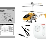 - Hélicoptère, télécommande IR, câble de charge USB, hélice arrière de rechange, manuel