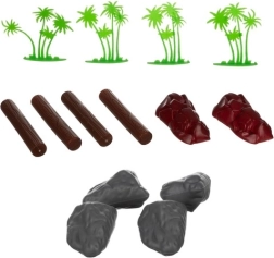 • 4× pierre, 2× rocher, 4× palmier, 4× rondin