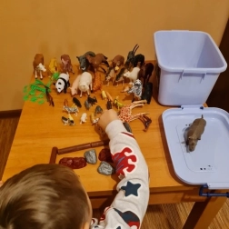 Une riche collection d’espèces domestiques, forestières et sauvages stimule le jeu créatif et l’apprentissage des noms ainsi que des milieux dans lesquels les animaux vivent.