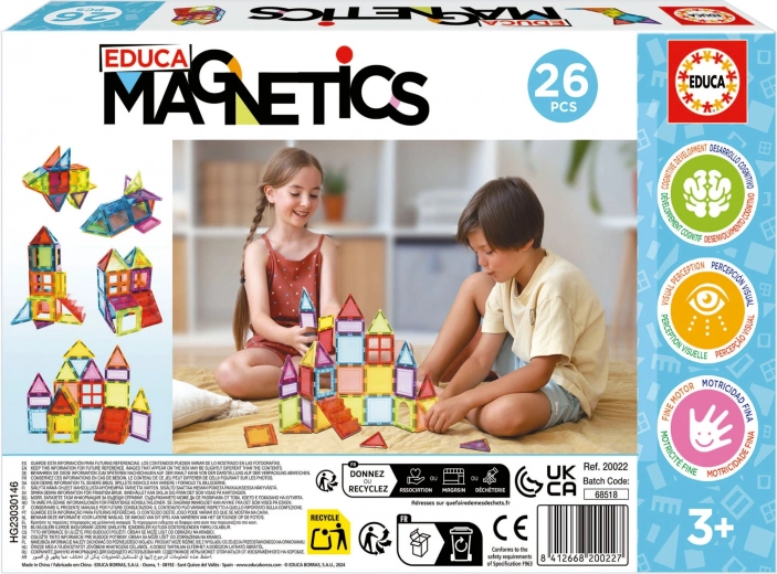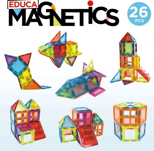 Imagine – construis – apprends ! Jeu de construction magnétique créatif Magnetics du fabricant espagnol EDUCA, qui permet d’assembler une grande variété d’objets tridimensionnels à l’aide de polygones en plastique bidimensionnels.