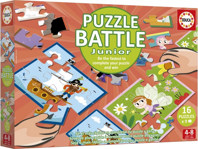 Bataille de puzzles rapide par EDUCA : 16 mini puzzles de 9 pièces, 16 modèles, développement de la coordination, de l’attention et de la patience. Super divertissement pour les enfants et la famille.