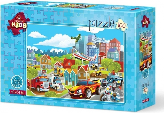 Puzzle pour enfants sur le thème des moyens de transport, 100 pièces. Dimensions une fois assemblé : env. 48 × 34 cm. Amusement et entraînement de la logique et de la motricité pour les petits adeptes de puzzles.