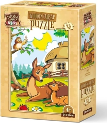 Adorable puzzle en bois avec une biche maman qui ravira les petits amoureux de la nature. Les pièces sont découpées dans un contreplaqué africain en bois, souple et résistant, et une fois assemblées, elles forment une image d’environ 16 × 24 cm. Idéal pour développer la motricité fine, la patience et l’imagination visuelle. 25 pièces, contreplaqué en bois résistant, joli motif naturel.