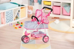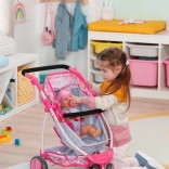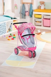 Elle est équipée de trois roues assurant une maniabilité facile, et ses poignées réglables en hauteur permettent une utilisation par des enfants de différents âges. À la fin du jeu, la poussette peut être facilement pliée, ce qui est pratique pour le stockage dans de petits espaces.