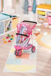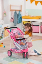 Cette poussette combinée est l'accompagnatrice idéale pour les petites soigneuses et leurs poupées. Grâce à sa capacité de transformation en version sportive, la poupée peut profiter du trajet dans plusieurs positions. La poussette est équipée d'un pare-soleil que l'on peut facilement replier pour bronzer, et d'un espace de rangement spacieux pour tout ce qui est nécessaire lors de la promenade – du nounours aux trésors trouvés en chemin.