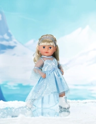 Ce set élégant pour poupées BABY born 43 cm apporte la magie d’un royaume hivernal au jeu quotidien. La robe légère et scintillante avec son voile s’enfile facilement, et grâce au diadème, la coiffure reste impeccable même pendant chaque pirouette. Les chaussures blanches façon patins encouragent l’imagination et les histoires de patinage artistique.