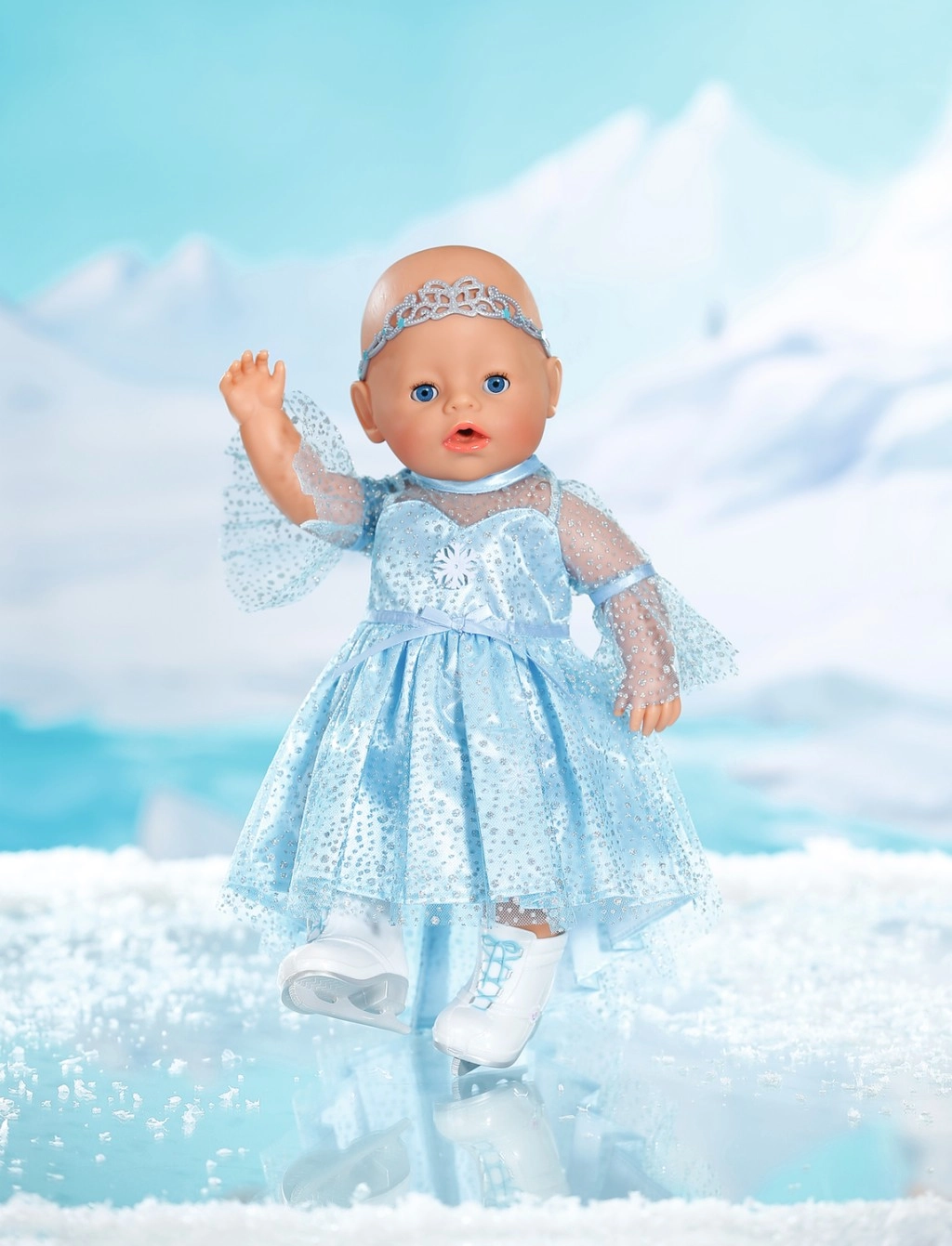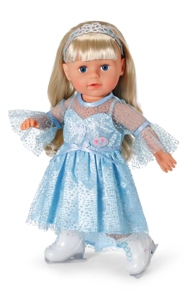 Transformez votre poupée BABY born en véritable princesse des glaces. Une robe bleue scintillante à l’éclat intense, un diadème pour les cheveux et des patins blancs aux lames réalistes inspirent des histoires magiques sur un lac gelé. Idéal pour les poupées de 43 cm et le jeu d’habillage créatif.