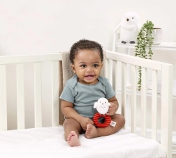 Léger et doux, le hochet est idéal à la maison, pour la poussette et en sortie – toujours à portée de main pour apaiser et divertir.