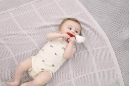 L’anneau textile à structure antidérapante est facile à tenir pour l’enfant et aide à développer la motricité fine.