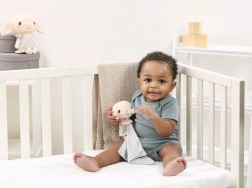 Le tissu texturé et les détails brodés encouragent le toucher et la curiosité des tout-petits.