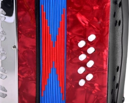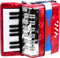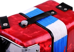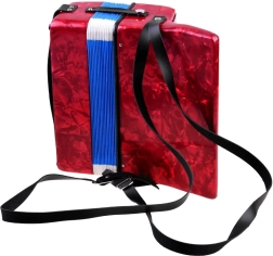 Ce grand accordéon pour enfants se distingue par sa conception réaliste et sa facilité d’utilisation. Le son est produit comme sur un véritable accordéon – en étirant et comprimant le soufflet. Grâce à la poignée confortable et aux courroies d’épaule en cuir, il est facile à tenir et à jouer pour les enfants. Le fermoir du soufflet protège l’instrument lors du transport et du rangement.