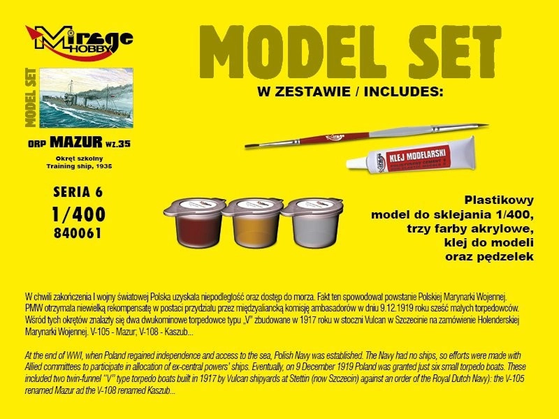 Construisez l’iconique destroyer-école polonais ORP Mazur dans sa version wz.35. Cette maquette plastique à assembler se distingue par des détails nets et une conception facilitant l’assemblage sans complications inutiles. Un excellent choix pour quiconque souhaite enrichir sa collection de bâtiments navals historiques.