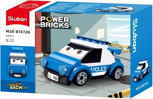 voiture de police à ressort avec des yeux, facilement combinable avec d'autres ensembles de construction, offrant du plaisir pour les enfants à partir de 6 ans.