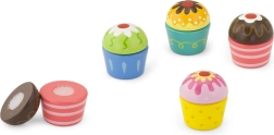 Laissez libre cours à l’imagination des enfants et permettez au petit pâtissier de créer ses propres associations sucrées. Chaque cupcake est composé de deux parties reliées par une bande auto-agrippante — glaçage et base se remplacent facilement, encore et encore. Un complément idéal pour la cuisine d’enfant, ainsi que pour jouer à la marchande ou au café.