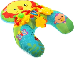 Ce coussin de stabilisation coloré pour bébés avec motif animal et jouets suspendus offre un soutien lors du temps sur le ventre comme pendant le repos. Grâce au mini tapis bruissant et aux hochets, il développe la vue, l’ouïe et le toucher, favorise la coordination des mouvements et égaye chaque moment de jeu. Un compagnon léger, doux et facile à entretenir, à la maison comme en déplacement.