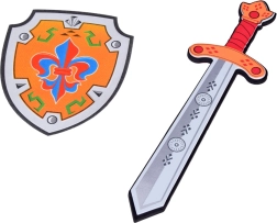 Le bouclier est orné de l’iconique fleur de lys, qui stimule l’imagination et invite aux quêtes chevaleresques. L’ensemble complète parfaitement un costume de chevalier pour le carnaval, un anniversaire ou un spectacle scolaire. Ses dimensions pratiques (bouclier env. 19 × 23 cm, épée env. 43 × 12 cm) conviennent aux mains des enfants et facilitent la manipulation.