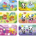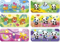 Découvrez le monde des histoires avec la panda Bimba ! Chaque carte représente une petite scène que l’enfant complète en associant correctement les trois grandes pièces. Les enfants entraînent ainsi naturellement la pensée logique, la coordination œil–main et enrichissent leur vocabulaire.