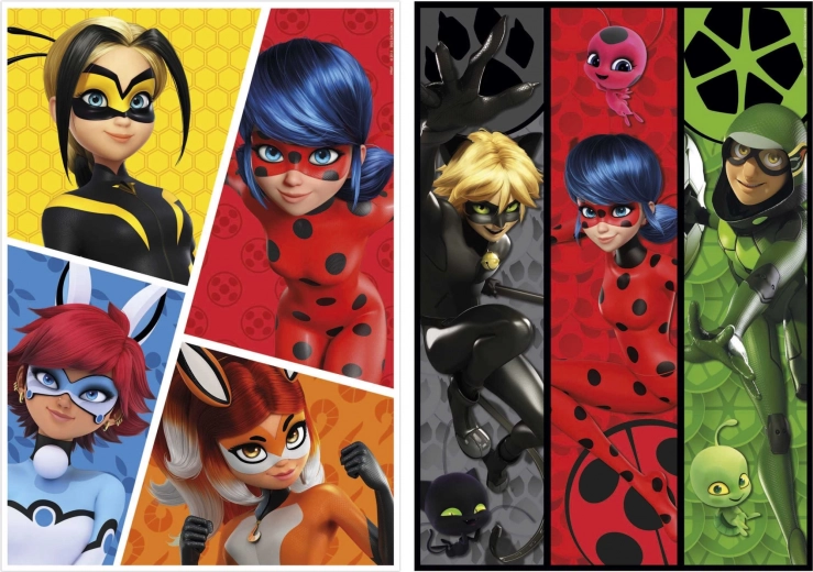 Un amusant double pack de puzzles pour enfants de la marque EDUCA avec le motif Miraculeuse Coccinelle et Chat Noir propose 2×100 pièces aux couleurs vives et un format final d’environ 40 × 28 cm.