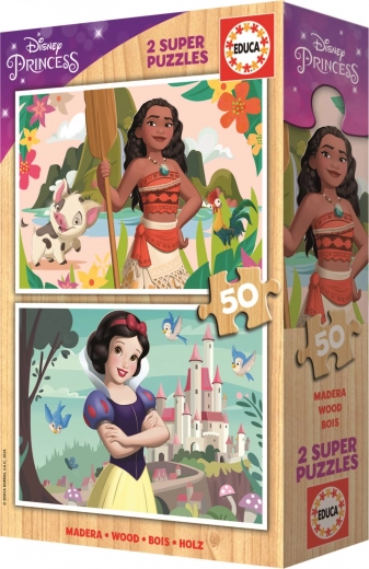 Puzzle en bois Disney Princesses Vaiana et Blanche-Neige 2×50 pièces