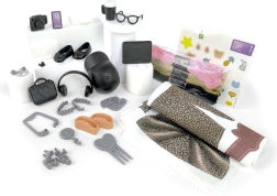 Fabriqué à partir de matériaux 100% recyclables, en Espagne. Chaque kit comprend une poupée à assembler, un tissu avec des motifs pré-imprimés (61x32 cm), des accessoires de mode, des fils pour les cheveux, une perforatrice pour vêtements, des accessoires et un guide illustré. Les kits créatifs sont disponibles dans différents thèmes comme Atelier de Mode, Fête, Pop Star, Glam Chic, Monde de Fantaisie et Style Décontracté.