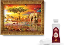Profitez d’un puzzle de qualité au motif des Rois de la savane et transformez l’œuvre terminée en un tableau impressionnant. Le coffret contient tout le nécessaire : pièces résistantes, colle pour une fixation longue durée et cadre élégant pour un accrochage facile.