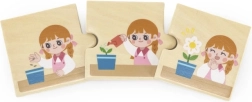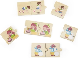Ce puzzle en bois de VIGA permet à l’enfant d’assembler 8 séries de puzzles colorées illustrant différentes activités d’enfants dans leur vie quotidienne. Il inclut des activités populaires comme se laver les mains, courir ou souffler les bougies sur un gâteau.