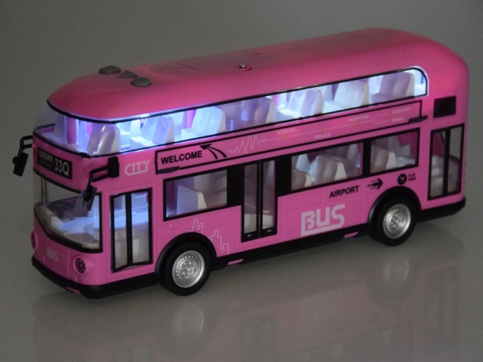 Bus à impériale rose avec sons et ouverture des portes ZA4748