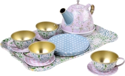 L’ensemble est en métal et imite parfaitement un véritable service de table et à café. Le service à thé et à café offrira un excellent divertissement associé à l’apprentissage.