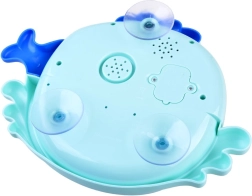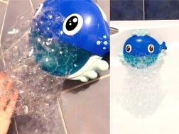 Allumez la baleine via le bouton situé dans son œil et regardez le flux de bulles de mousse qui transforme le bain en fête.