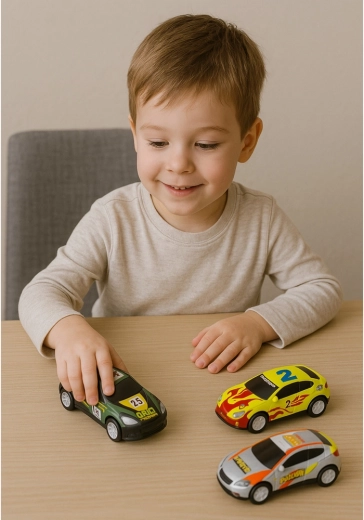- Motricité fine et globale – manipuler les voitures améliore la coordination manuelle.