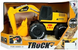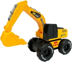 Pelleteuse réaliste jaune et noire pour enfants dès 3 ans, avec mécanisme à friction, effets lumineux et sons de klaxon et de marche arrière. Le bras et le godet mobiles favorisent le jeu créatif sur le chantier. Fabriquée en plastique de qualité, sûre et résistante, avec certification CE et norme EN 71.