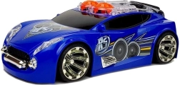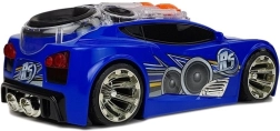Voiture de sport amusante pour enfants avec un toit rempli de haut-parleurs, des effets lumineux dynamiques et de la musique. Grâce à deux boutons, lancez des mélodies, un son d’accélération et voyez les roues tourner à toute vitesse tandis que les haut-parleurs bougent en rythme. Cadeau idéal pour les petits fans de musique et d’automobiles.