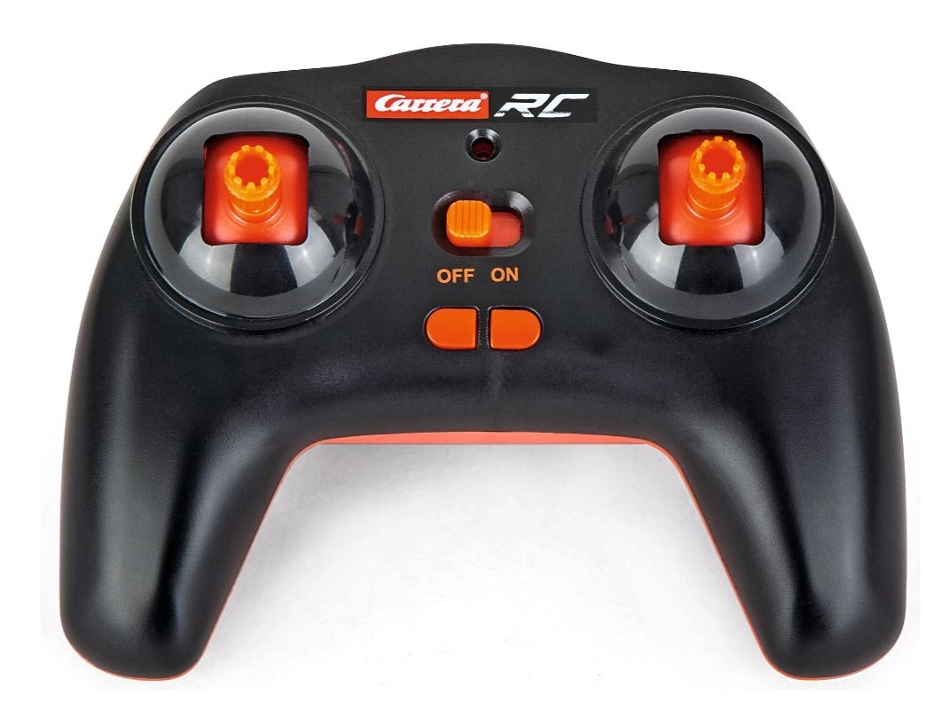 Une télécommande ergonomique noire avec leviers de commande rouges offre un contrôle simple et intuitif de votre voiture RC.