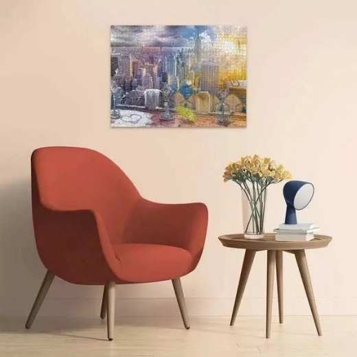 Profitez de la détente et de la concentration avec le puzzle premium Ravensburger au superbe motif de New York, jouant sur le contraste entre été et hiver. Grâce à la surface antireflet à texture de lin, l’image est nette et sans reflets gênants – parfaite pour l’assemblage de jour comme de soir.