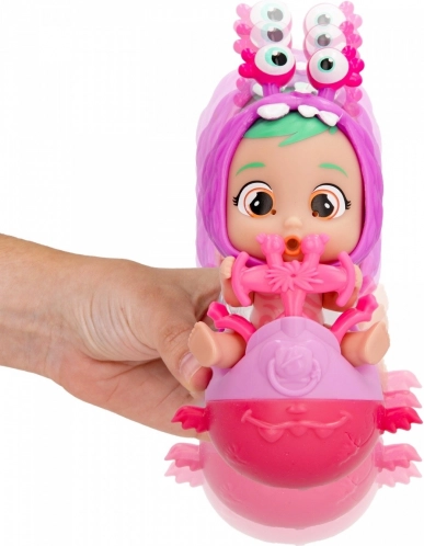 Après avoir été remplie d’eau et en pressant son ventre, la poupée se met à pleurer des larmes colorées en gel, offrant une expérience de jeu réaliste.