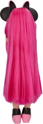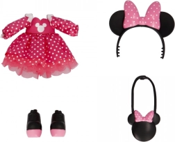 La poupée est équipée de vêtements et d’accessoires inspirés des personnages Disney, incluant un sac à main, une paire de chaussures et un collier.
