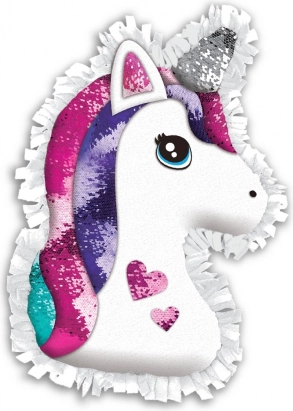 Kit créatif coussin DIY Licorne : sans aiguille, avec sequins réversibles. Pièces prédécoupées et notice simple. Super activité pour enfants dès 6 ans.
