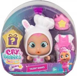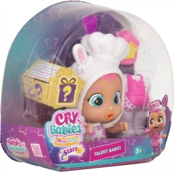 Découvrez Coney de la collection Cry Babies Magic Tears Stars Talent — une petite boulangère dans une tenue en silicone toute douce avec capuche et oreilles de lapin. Grâce à une meilleure mobilité des articulations, vous pouvez facilement l’asseoir, la mettre debout et l’intégrer à des scénarios de jeu créatifs. Après avoir rempli le biberon d’eau et pressé délicatement son ventre, la poupée pleure de vraies larmes, aidant les enfants à vivre et développer leurs émotions.