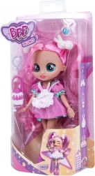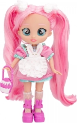 La poupée Coney est habillée comme une chef cuisinière stylée, avec un tablier blanc et des chaussures roses, ajoutant à son charme personnel.