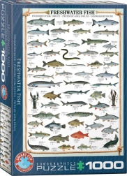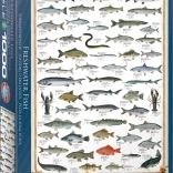 Plongez dans le monde des poissons d'eau douce et des crustacés avec ce puzzle unique. Chaque image est complétée par le nom latin, le poids moyen et la longueur, ainsi que les noms dans quatre autres langues : anglais, français, espagnol et allemand.