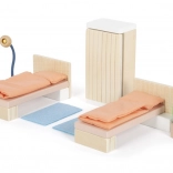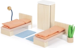 La chambre miniaturisée pour maison de poupée de la marque Small Foot apporte le charme des véritables meubles dans le monde des enfants. Cet ensemble de meubles élégant comprend un lit double qui peut facilement être divisé en deux lits simples, offrant ainsi flexibilité pour différents types de jeu. Il comprend également deux oreillers, deux couettes, une armoire avec miroir, une lampe et deux tapis qui complètent l'authenticité de cette chambre miniaturisée.