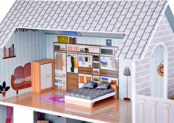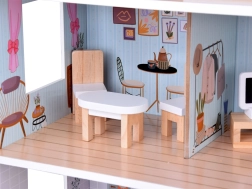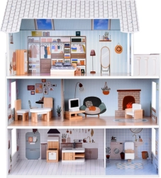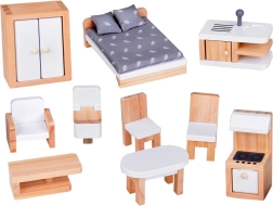 L’emballage comprend un riche ensemble de meubles, grâce auquel il est facile d’aménager chaque pièce. La structure en bois robuste, les bords lisses et les matériaux non toxiques garantissent un jeu en toute sécurité. Le montage est rapide et intuitif – les pièces sont numérotées et la notice illustrée vous guide pas à pas.