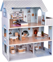 Maison de poupées en bois avec 3 étages, 5 pièces et un balcon séduit par ses finitions détaillées, son design pastel et son riche équipement. Inclus : un ensemble de meubles pour un jeu réaliste, des matériaux non toxiques et un montage facile. Ses dimensions compactes 70 × 60 × 24 cm s'intègrent parfaitement dans une chambre d'enfant.